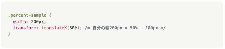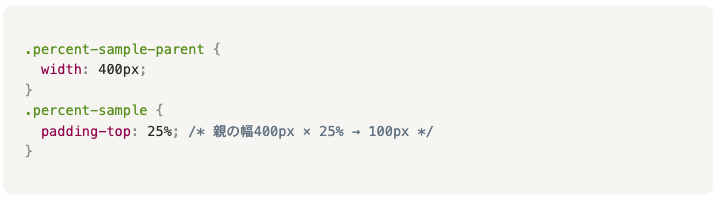 %を指定している要素の親要素内の同一プロパティの値(一部を除く)を100%とした相対的な値。