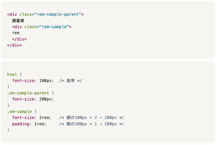 ルート要素(通常はhtmlタグ)のfont-sizeを1remとした相対的な単位。